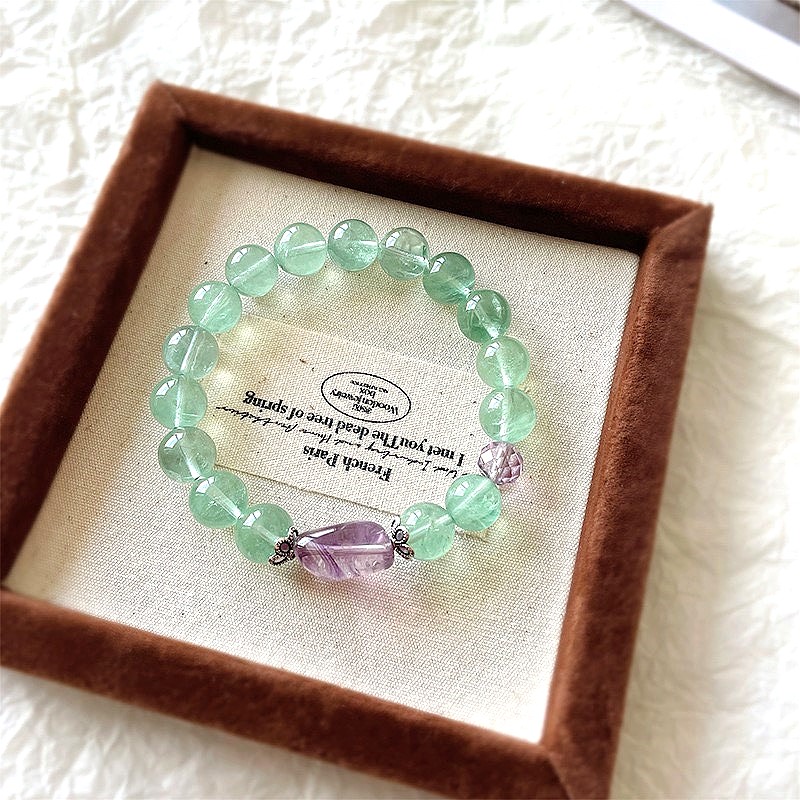Green fluorite Amethyst Natural crystal Bracelet for Women healing Attracting wealth